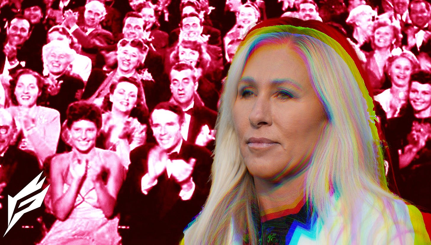 Despite laundering her reputation on certain issues for liberals, Greene has stayed true to her core principles of demonizing immigrants and maintaining a virulent anti-trans position, just last week introducing legislation to criminalize gender-affirming care for minors. The moderate pivot to addressing a general audience isn’t a wholesale reversal of her previous positions. She’s still America First but feels Trump has lost his way; she’s still a Christian nationalist, but believes Trump is not serving that purpose anymore.
